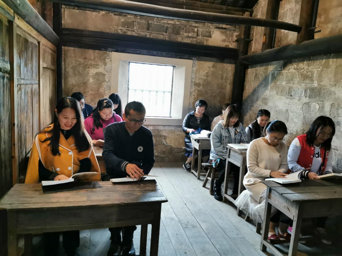 之后,在旧址二楼的学生课堂复原室里,大家拿出《习近平新时代中国特色社会主义思想学习纲要》进行了集中学习。旧址与新时代理论的交汇,让大家感触良多,既感慨革命年代教育事业的不易,也感慨我党思想理论发展的不易,纷纷表示要珍惜现在的美好时光,积极投入到理论学习中去,从我党先进理论中吸取养分,筑牢信仰之基,补足精神之钙。