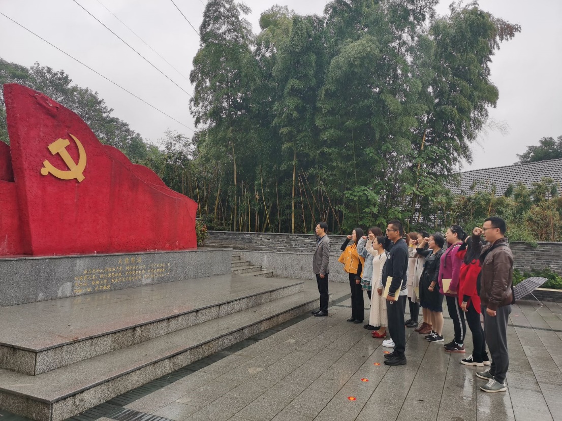 最后,大家一起来到旧址广场,由高文辉领誓,大家面对对鲜红的党旗重温入党誓词。在誓词中,大家重温了入党的初心,明确了身上的使命,虽然淋着细雨,吹着寒风,但是在场的党员们激情澎湃,热情高涨,心中都燃烧着一团熊熊的烈火,誓为共产主义事业奋斗终身!