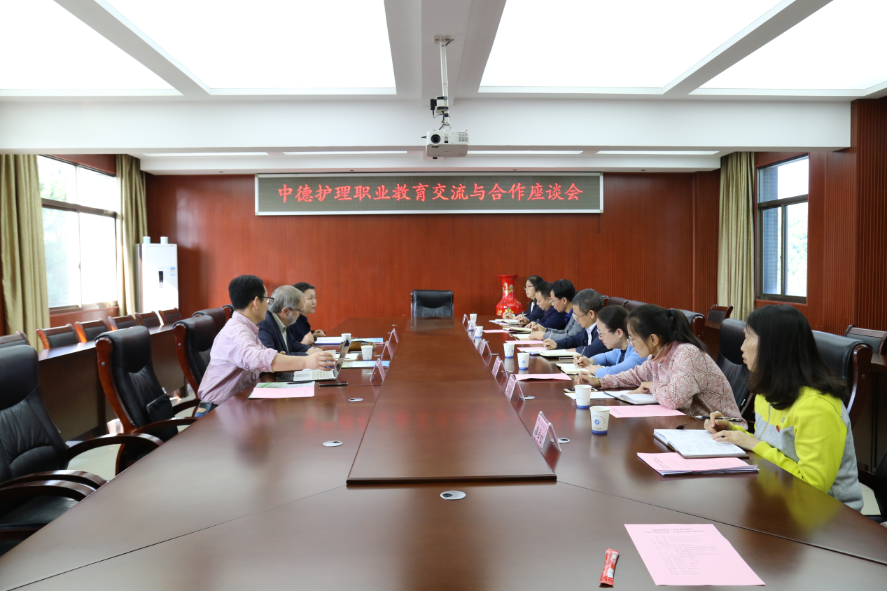 10月18日上午,中德护理职业教育交流会在我校307会议室举行,德国柏林勃兰登堡教育协会常务会长、原柏林身体保健高等职业学校校长Peter Mibus先生,中德职业教育研究院行政院长、柏林勃兰登堡教育协会会员高红女士,中德职业教育研究院湖南办事处主任马军军先生受邀出席。校长刘柏炎主持交流会并讲话,工会主席冯灿霞、副校长高文辉及学校办公室、组织人事处、教务处、护理系等部门负责人参加会议。