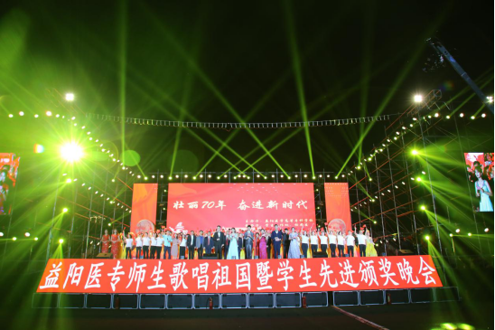 2019年10月18日晚,益阳医专田径场热闹非凡。“壮丽70年,奋进新时代”益阳医专师生歌唱祖国暨学生先进颁奖晚会在这里举行。党委书记周逢春、校长刘柏炎及在家的全体校领导,教学医院、附属医院相关院领导及全校师生欢聚一堂,共同观看了这场盛大的晚会。