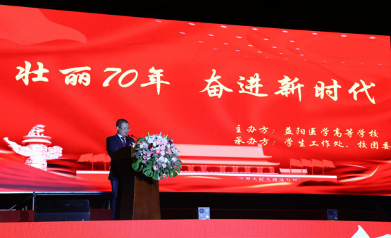 刘柏炎代表学校致辞,他勉励全体医专学子:坚定信念理想信念,做一名有信仰的新时代青年;涵养家国情怀,做一名有担当的新时代青年;弘扬奋斗精神,做一名有作为的新时代青年。