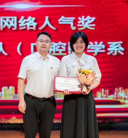 党委委员、副校长姚腊初为潜心育人奖获得者颁发“明德弘医·穿石力量”奖杯
