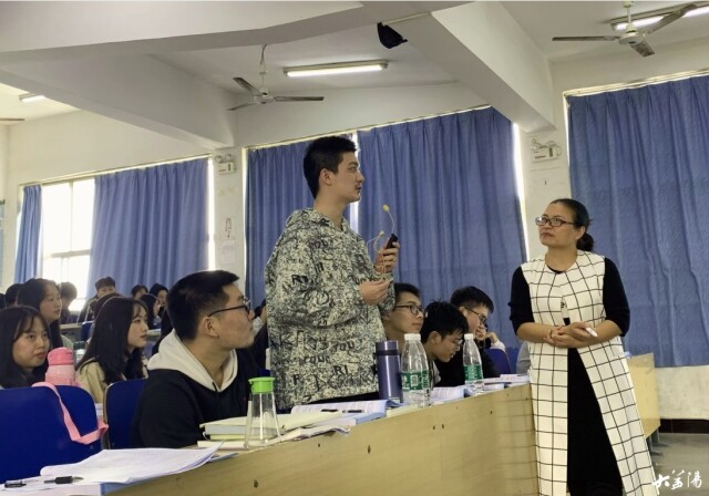 药理学教授李新才还有个高招,学习任务重,学生状态不是很好时,他习惯性地讲讲小故事,有科学家历经艰辛,发明了一种新药造福人类;或者德国化学家霍夫曼以身试药,攻克世界医学难题等;甚至他就让学生站起来,唱上一曲国歌,往往都能为学生打一剂“强心针”。