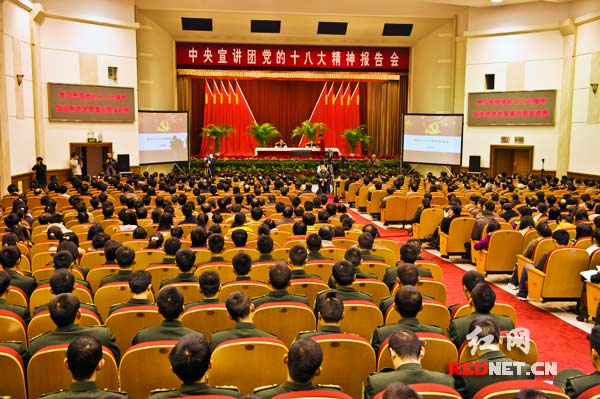 (12月3日上午,中央宣讲团党的十八大精神报告会在中共湖南省委大礼堂举行。)