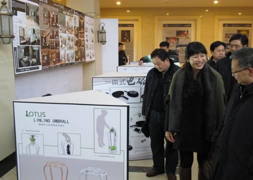 2013届湖南艺术职业学院毕业生艺术实践成果展示吸引了王柯敏的脚步。