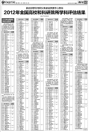 2012年全国高校和科研院所学科评估结果 2012年全国高校和科研院所学科评估结果 www.hnedu.cn 发表时间: 时间标签 来源:中国教育报 【字体:大 中 小】 点击: 点击数 1月29日,教育部学位与研究生教育发展中心发布了2012年学科评估结果。评估对象是具有研究生培养学位授予资格的一级学科,以高等学校为主,兼顾科研院所,共有391个单位的4235个学科参加评估。本报今天五版到十二版全文刊登此次评估结果,敬请广大读者关注。 责任编辑:蒋乐红 【打印正文】
