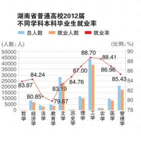 余杰提醒,高校毕业生就业的数据能反映社会的需求变化,但专业的冷热是变化的,而高校专业设置及调整常常会滞后于市场,譬如今年湖南科大的人力资源管理专业的就业率只有去年同期的一半,而电子商务专业却增加一倍。
