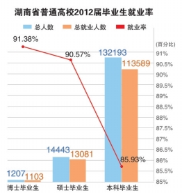 全国普通高校2012届毕业生总数为680万人,比2011届多20万人,其中,湖南省32.54万人,比2011届多1.93万人,占全国总人数的4.79%。