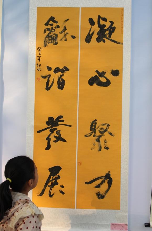 优秀的书法作品吸引市民注意。 摄影/章仙踪