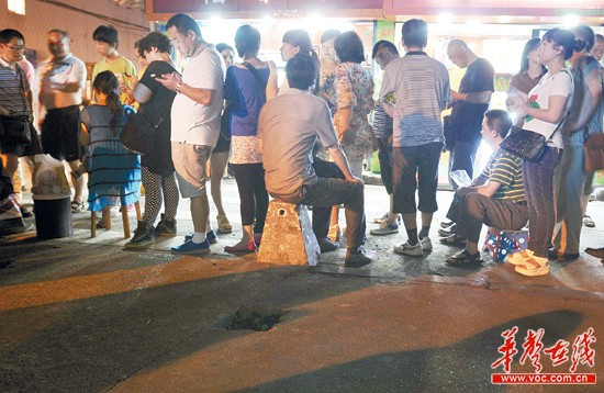 7月2日21时许,长沙市长郡中学门口,许多家长听说达到该校最低线后先签约就可以进校读书,百来名家长在此连夜排队。21点50分时,学校工作人员出来解释,家长才离开。记者 李健 摄