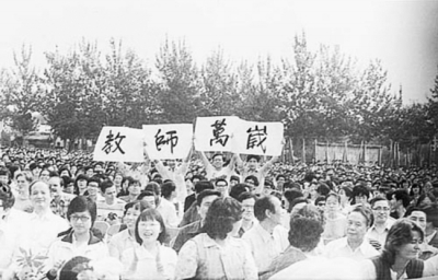 中央领导同志号召全社会都要尊重教师,这是一件意义非常深远的大事。我们要振兴中华,实现四个现代化的目标,不尊重教师,不重视文化科学技术的作用,是不成的。