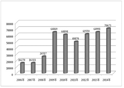 2006—2014年特岗教师招聘人数统计(不含新疆双语特岗教师)