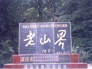 老山界是当年红军长征所翻越的第一座高山,毛主席《长征》一诗中有“五岭逶迤腾细浪,乌蒙磅礴走泥丸”诗句,老山界的地理位置就在诗中“五岭”之一的越城岭北麓。1934年12月,红一、九军团红军历尽艰险翻越此山,陆定一的《老山界》一文就真实地记载了当时的场景,文中记述:“在之字拐的路上,一步一步走上去,向上看,火把在头顶上一点点排到天空,向下看,简直是绝壁,火把照着人们的脸,就在脚底下”,是“当年红军长征中所过的第一座难走的高山”,老山界也因此文而名扬天下。