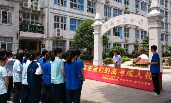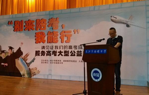 今天(6月2日)下午,由长沙市教育局,湖南教育电视台联合主办的“别来陪考我能行”—见证我们的高考成人礼”服务高考大型公益行动在长沙市南雅中学启动仪式,600多名考生集体向家长发出倡议,