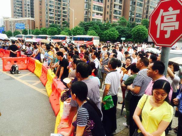 [直击高考]2015高考首日众生相 (交警在现场指挥交通) (家长们在考点外等待)(家长们在考点外等待)(家长在考点外等待)(考生脸上洋溢着笑容)一年一度的高考今天再次拉开大幕,6月7日上午9点,湖南省39万考生走进高考考场,迎来人生大考。 今年湖南有39万人报名参加高考,除去保送生、单独招生录取的考生外,今年实际参加高考的考生只有34万余人。全省14个市州设有123个考区、256个考点、1.2万间考室,考务工作人员近5万人。(图片:沈娟娟) 责编:佳子 【打印正文】