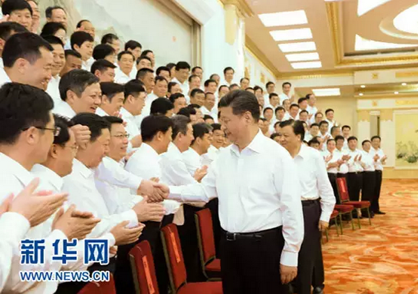 6月30日,党和国家领导人习近平、刘云山等在北京人民大会堂会见全国优秀县委书记。 新华社记者 兰红光 摄