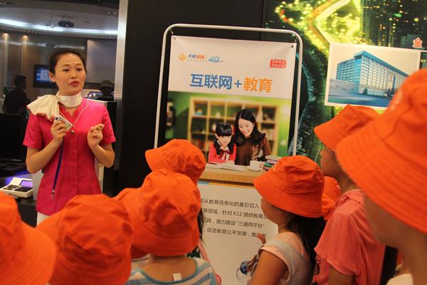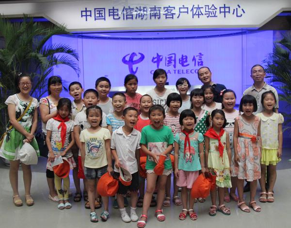 下午的重头活动是参观中国电信长沙旗舰店。电信准备了精彩的演示场所,吸引了孩子们的注意。参观内容及体验活动,包括课件展示,网上科学实验制作彩虹,可视电话,手机电脑互联互动,体感游戏打保龄球,唱歌《小苹果》,益智猜谜得奖品等。解说员冯漪灵说,让山区孩子们提前了解互联网,接触互联网,在游戏中学习知识,获得快乐,真好。