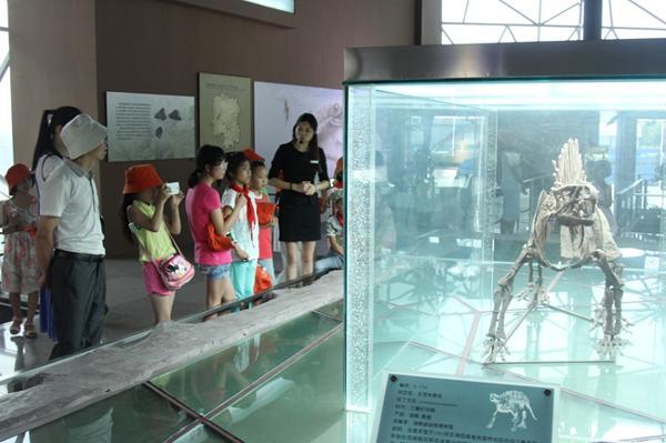 在湖南地质博物馆参观了解恐龙,图为湖南桑植发现的无牙芙蓉龙。