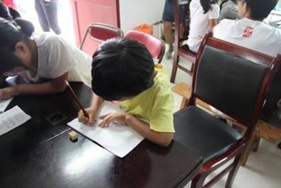 (图1:龙山县补洲村的孩子们在认真抄写国歌歌词)