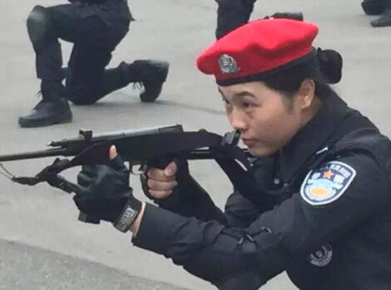 女子特警队员演练。