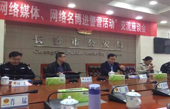 参观体验完警营活动后,在市公安局举行了“网络媒体、网络名博进警营活动”交流座谈会。会上长沙市公安局党委委员、政治部主任韦树恒这样说道,“公安系统如何运用网络媒体来沟通群众、服务群众,这是一个值得思考的问题,就是要利用网络为百姓办事,让老百姓少跑路快办事。”