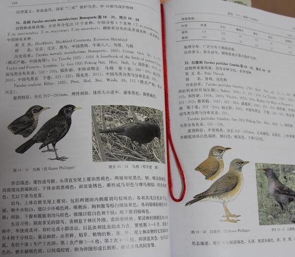 湖南动物志书里对乌鸫、白腹鸫的介绍。摄影/章仙踪
