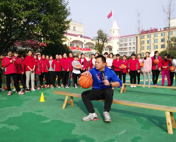 本网讯 正值2015年最后一个周末,难得的阳光明媚、风清气朗天气,长沙县六艺天骄幼儿园内传来一阵阵欢乐的笑声。操场上,120多名教师,穿着整齐的运动服,每人手持一个篮球,正在专注地训练着。这个场景,标志湖南第一家幼儿园引入学前篮球教育项目。