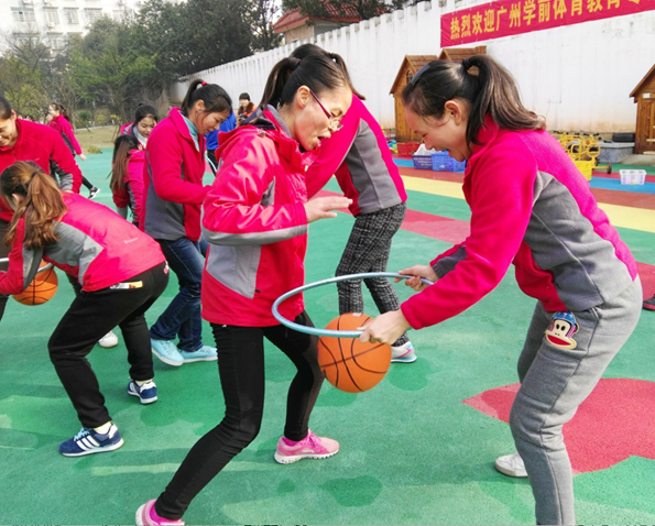 幼师们在进行运球练习。
