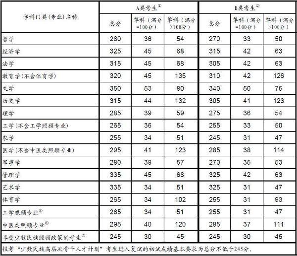 2016年全国硕士研究生招生考试考生进入复试的初试成绩基本要求(学术学位类)