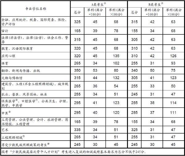2016年全国硕士研究生招生考试考生进入复试的初试成绩基本要求(专业学位类)