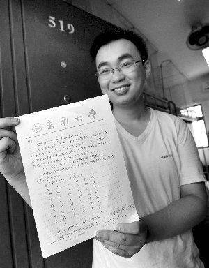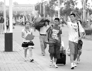记者 赵杰 摄 昨天,东南大学3986名新生陆续开始报到了,这也是南京第一所开学的高校。新生中有一位叫周雯婷的女生特别引人注目,她的学号“11111111”被称为史上最牛的学号。 最牛的学生 新生空前绝后的学号 引人关注 在东南大学今年录取的3986名新生中,生物与医学工程学院的周雯婷格外引人注目。她的学号“11111111”被校方称为“建校百年以来最牛的学号”。“这种八位都是同数字的学号以前没有过,以后可能也不会再出现,这个学号是空前绝后的。”校党委副书记刘波说。 周雯婷获得如此特别的学号,纯属意外。据校党委副书记刘波介绍,东南大学学生的学号由八位数组成,每一位数都代表学生的个人信息。周雯婷的“11111111”中,每个“1”都有不同的含义。首先,前两个“1”代表周雯婷是2011届的学生。第三个和第四个“1”代表她所在的科学与医学工程学院在全校各个学院中的编号为“11”。第五个“1”代表周雯婷所学的生物医学工程专业在学院各专业中的编号为“1”。第六个“1”代表她所在的班级为该专业的1班。第七、第八个“1”代表周雯婷在班上的学号是11号。 “同时,周雯婷所读的专业在全国排名第一,这也是隐含在其中的一个‘1’。”科学与医学工程学院党委副书记程斌说。“估计11年后,也不会有学号‘22222222’了,”他说,“因为学校编号22号的学院没有编号为2的专业。” 但更巧的还在后面,周雯婷告诉记者,20多年前,她的父亲周建是东南大学的一名研究生,并于1988年毕业。如今,自己的女儿也考入了东南大学。对于与东大的不解之缘,周建感慨万千。“我对东南大学的感情很深。高考点报志愿的时候,我就向女儿推荐了我的母校,只是她的学号比我牛。”周建说。 今年高考,周雯婷的成绩为380分,物理为A+,化学为A。周雯婷告诉记者,在平日的学习中,她能够在无人监督的情况下自学自律,能主动学习而非被动接受。所以,学习成绩一直很稳定。同时在业余时间里,她会参加竞赛辅导以训练思维。高考期间,她其实并不太紧张,有点顺其自然的感觉。“对我来说,考入东南大学是为11年苦读画上了一个圆满的句号。能与爸爸成为校友,是我的荣幸,也是我今后努力的动力。” 老生把握住开学商机 赚点外快 “崭新的自行车,300块一辆,便宜卖了!”从报名点走到学生宿舍,路两边排满了一辆辆崭新的自行车。有吆喝的人,也有拆台的人。看见有家长围拢过去想为孩子买车,一些学生悄悄围上去说,“暂时不要买,现在贵,过两天只要两百块一辆。” 不过,为孩子掏钱买车的家长还是不少,“这么大的校园没有自行车不方便。”一位来自南通的家长看也没看,就买下了一辆男式的自行车给儿子骑。 “我早上6点多过来的,抢一个好位置不容易。”医学院的一位大二学生告诉记者,这里卖自行车的都是学生,学校也是支持他们的,算是一种勤工俭学。这些自行车他们都是从市区里批发过来的,如果有存货,可以退掉,因此风险并不大。 记者初步统计了一下,一公里不到的路上,就有20多个摊位在卖自行车,所以竞争激烈,生意没有去年好做了。 还有的学生则做起了其他生意。一个瘦瘦高高的男孩面前摆着仙人球、芦荟等各式各样的小盆景,10元一盆,开张刚10分钟就卖出去一盆。“我这个利润小一点,一盆赚个四五元,但是卖的人少竞争小一点。”男孩今年研究生一年级,盆景是从花卉市场批发过来的,30盆一箱,自己搬运到学校。“我前年也卖过,一个星期能赚1000多元,补贴生活费挺好的。”记者看到,小盆景比较受家长欢迎,花钱不多买个放在孩子的新宿舍增添生气。 新生网上“提前报到” 早已相识 蒋一凡是今年考入东南大学数学系的新生。前天刚到学校报到,却一点也不形单影只。晚上放下行李就和20多位在人人网、新生QQ群里结识的同学、学长,在学校南门外的一家火锅店美美地吃了一顿。 “大家见面都能叫得出名字,因为早在网上见过彼此的照片了,席间谈得很热烈,那顿饭一直吃到快11点才散……”蒋一凡告诉记者,自打7月下旬接到东南大学的录取通知书之后,他就在人人网上找到了东南大学数学系2011级的班级账号,“提前报到”了,同学们在上面发帖介绍自己毕业的学校、性格特征,还附上了照片。 不仅如此,他还通过百度搜索2011东大新生群的群号申请加入。新生群的人气很旺,不光有今年的大一新生,还有许多大二大三的学长。大家在群里交流方方面面的信息,比如通过交流,蒋一凡知道了在东大九龙湖校区,梅园的餐厅要比桃园的好一些,知道了校园小店里的东西都差不多,知道了学校周边的交通环境,知道了哪些选修课的老师最受学生欢迎,知道了马上要开始的军训都有哪些项目…… “我们昨天聚餐的火锅店,也是在QQ群里聊出来的,还知道那家火锅店是4位大二学长合伙新开张的呢。” 在东南大学学生处副处长孙莉玲的印象中,开学迎新前几天,她先后和7位新生辅导员作了些交流,而7人均告诉她,已为自己的班级建了QQ群、人人网账号,然后通过网络把一些注意事项、自己的联系方式、上学报道路线告诉给学生,和新生做一些交流。 “我感觉人人网、QQ群被新生群普及利用,也是今年才有的新鲜事。”孙莉玲说,以前学生基本只知道学校的论坛、贴吧,而现在的新生和年轻辅导员,都更善于利用社交网络,因此结识新同学并不局限于开学后,而是提