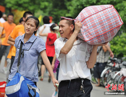8月20日,南京东南大学迎来了首批“学生潮”。众多新生带着席子、被褥,电扇、手机、MP3乃至MP5、PSP、电脑前来报到。虽然学校和社会近年不断发出新生独自入学、培养独立能力的倡议,但家长对孩子考上大学的喜悦和执着的爱,让他们难却陪送的脚步,庞大的新生“亲友团”依然是大学校园迎新时节的一道风景。泱波 摄 |