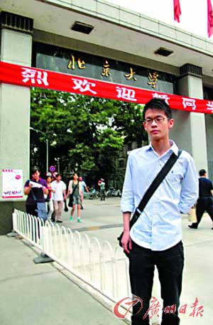 李戡在北京大学门前拍照留念。 9月1日,北京高校开学的日子。李敖的儿子李戡前往北京大学报到,开始在北京求学的生活。 9时40分左右,北大南门外,“热烈欢迎新同学”的条幅格外显眼,拖着行李的新生与家长三三两两踏进燕园。李戡一下车,便有记者走上前,面对镜头,李戡显得很淡定,脚步并未停下来,跨过北大南门,直奔经济学院报名处。 被记者围堵时很淡定 李戡和众多前来报到的新生一样,走在林阴道上,只是他并没有行李。李戡走到经济学院报名处,现场忽然变得混乱,早已埋伏在此的各路记者瞬间将整个报名处围得水泄不通。对于今天这阵势,未见李戡有丝毫的慌乱,反倒很配合记者,每个问题几乎必答,但言语绝不多。 李戡在拥挤中掏出北京大学录取通知书,在一份学生名册的最后一页找到了自己的名字:签到,上面还写着他的宿舍号。很快,报到完成,李戡拿着老师发的牛皮纸档案袋和宿舍钥匙离开。这时,经济学院报名处前忽然一下变得安静。 希望听林毅夫的课 走进北大,所有的手续他一个人在学长的帮助下全部办完。最后,来到宿舍楼——这是一栋建于2000年初的宿舍楼,他被分在一楼,四人一间。他是宿舍里第一个来报到的。他的床铺是1号,下铺,书柜靠窗,母亲有些担心太吵,李戡反倒安慰母亲,“没什么”。 随后看了公共洗浴室,他直说挺好挺好。这是李戡第一次离开家,开始过自己的集体生活。对这种新生活,李戡的脸上并未流露出恐惧,只说一切都好,“先试试看,至少应该住一个学期吧。”出宿舍楼的时候,一个新来的男生认出了李戡,向他打招呼,李戡微笑着回应。走出宿舍,天空飘起了小雨,李戡再次被媒体围住,一起送他的一个姑娘给他撑起了伞,李戡忙回头想要自己打伞。 到经济学院学习,李戡说自己最仰慕的是林毅夫,希望有机会听到他的课。 “我不会翘课” 对于今后在北大的日子,李戡说要尽量读书,做好学生的本分。他说自己在台湾被视作怪胎,但在大陆他说自己只是一个普通的学生。 面对“遇到不喜欢的课会不会翘课”的提问,他直言不会,“我是很遵循这种作为学生的这种礼教,我是很在乎这些事情的,我不会翘课。”李戡说。 当媒体问其面对大陆的思想政治课程会不会有所障碍时,他称自己会去上这些思想政治课程,“台湾学生可以不用学,可是我还是照学,因为我觉得不需要有区别。” |