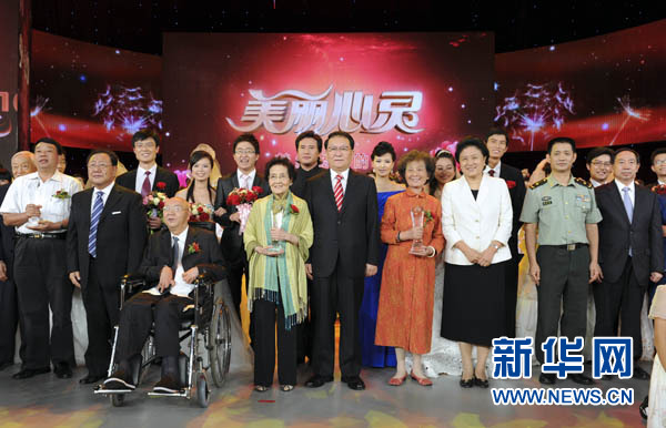 9月5日,中共中央政治局常委李长春在北京观看为庆祝2011年教师节录制的大型主题晚会《美丽心灵——献给老师的歌》,并为2011年度“全国教书育人楷模”颁奖。这是演出结束后,李长春与获奖教师和演出人员合影。新华社记者谢环驰摄 新华网北京9月5日电 中共中央政治局常委李长春5日晚观看了为庆祝2011年教师节录制的大型主题晚会《美丽心灵——献给老师的歌》,并为2011年度“全国教书育人楷模”颁奖。李长春向获奖教师表示热烈祝贺,他勉励广大教师以先进楷模为榜样,忠诚党的教育事业,恪守教师职业道德和学术道德,以学识魅力和人格魅力感染学生、教育学生,在敬业奉献中使人类灵魂工程师的光荣称号绽放出时代风采。 由教育部和中央电视台联合举办的这台晚会,通过歌舞、诗朗诵、主题故事、人物访谈等多种形式,生动反映了《国家中长期教育改革和发展规划纲要(2010-2020年)》实施一年来取得的可喜成绩,热情讴歌了当代人民教师春风化雨、教书育人的崇高师德,充分展现了全社会尊师重教的良好风尚,为全国1700多万教育工作者送上了一份特殊的节日礼物。 伴随着歌舞《老师》、《幸福瞬间》,歌曲《老师我总是想起你》、《世界因你而美丽》,以及诗朗诵《老师的誓言》、教师之歌《心曲》等精彩演出,晚会讲述了94岁高龄仍坚守教学一线的上海音乐学院终身教授周小燕,被誉为“中国的霍金、材料科学的活地图”的中南大学教授、中国科学院院士金展鹏,坚持38年用扁担从几十里外给孩子们挑书本、粮食的广西融水苗族自治县汪洞乡达佑屯教学点教师周宏军,被称为“最美乡村女教师”的重庆市巫山县平河小学教师曹瑾,教育改革创新模范、湖北省武汉市汉阳区钟家村小学特级教师桂贤娣等人默默耕耘、潜心育人的先进事迹和动人故事,深深打动了现场观众,赢得了一次次长时间的掌声。随着2011年度“全国教书育人楷模”结果的揭晓,整台晚会达到高潮。受表彰的楷模教师受到了在场的党和国家领导人、社会各界人士以及学生代表的真挚谢意和节日祝福。现场观众纷纷赞扬这台晚会思想性、艺术性、观赏性俱佳,编排独到,感人至深。据悉,晚会将于10日晚在中央电视台播出。 中共中央政治局委员、国务委员刘延东,全国政协副主席、中国社会科学院院长陈奎元一同观看。 |