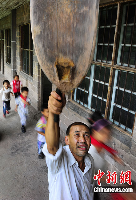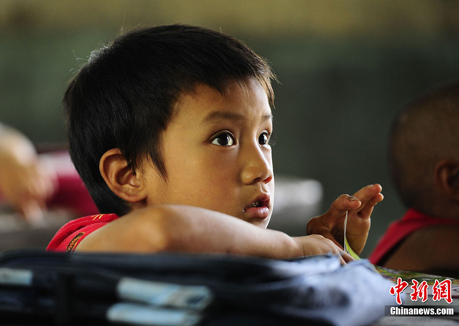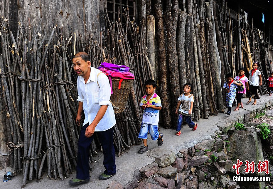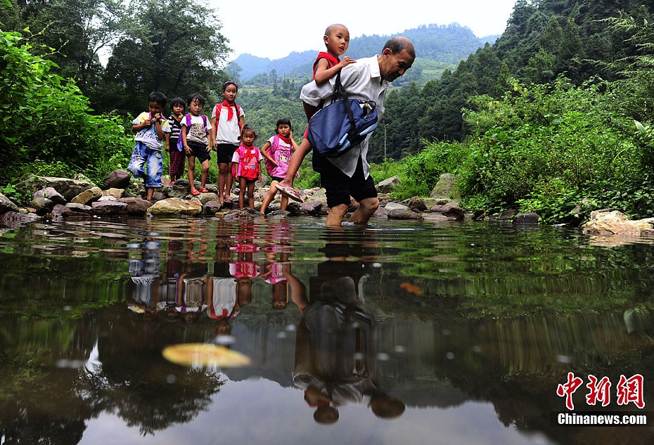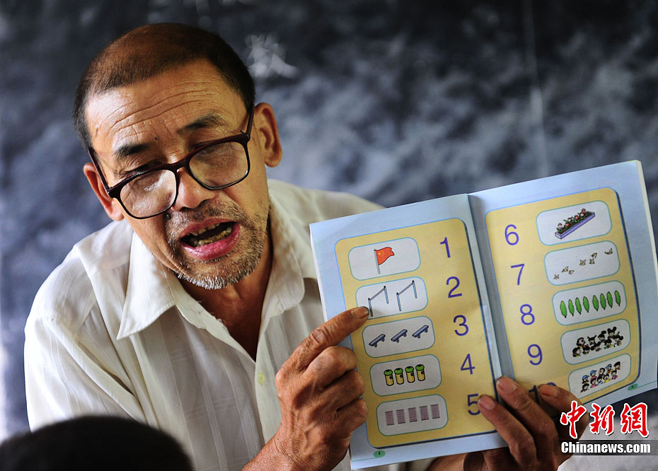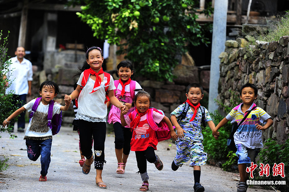 9月1日,新学期的第一天,天刚蒙蒙亮,田洪柏老师正领着学生举行开学升国旗仪式。旗杆是根4米多长的竹子,学生们佩戴着红领巾,仰望着飘扬的国旗,因地处偏远,县里保留了这个教学点,方便低年级的孩子上学。湖南省湘西土家族苗族自治州保靖县毛沟镇巴科村位于湘渝交界的山区,白坪学校巴科教学点就设在这大山深处。这里只有7名学生,分为学前班、一年级和二年级,56岁的田洪柏是唯一的老师。他与大山为伴,在此教书已有整整33年。据了解,1978年,23岁的田洪柏当上民办教师,开始了他33年的执教生涯。“要让孩子走出大山!”是他初握教鞭时立下的铮铮誓言。中新社发 郭立亮 摄 |