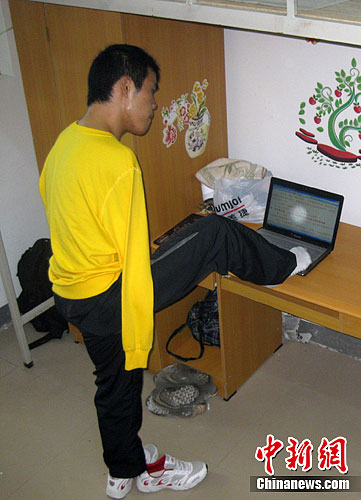 无臂青年吴建平今入校 曾用嘴咬笔参加高考(图)