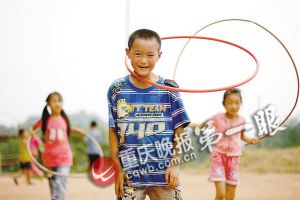 用塑料管做成的呼啦圈是同学们玩得最多的玩具