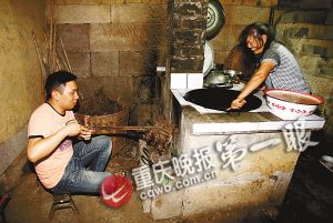 重庆晚报记者韩毅与乡村老师一起烧柴煮饭