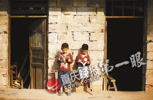 虽然条件艰苦,但是山里的孩子很热爱学习,两位同学正坐在教室门口看书。