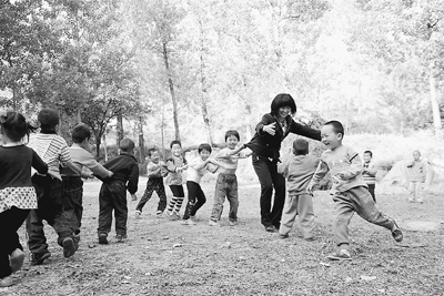 课堂上,孩子们特别认真。 河南省内乡县赤眉镇庙北村李家营有一位义务教书20载的编外老师张彩青。她既是老师,还是12个山里孩子的“妈妈”。 1988年秋,高中毕业的张彩青嫁到了李家营。这里是全镇最偏僻的穷山村,孩子们上学难,一直是乡亲们最苦恼的事。 从小在苦水里泡大、也有过艰辛求学经历的张彩青,肩负着乡亲们的重托,踏上了教书育人的讲台。 她一人身兼数职,扮演着多种角色,校长、教师、保姆、义工。每天,她把一个个孩子接到学校;课堂上,她教给孩子知识;课下,她和孩子们一起嬉戏玩耍;中午,她下厨为孩子们做饭;孩子不舒服了,她带孩子去看病,像妈妈一样朝夕看护。 20个春秋过去了,在张彩青的启蒙教育下,不少孩子走出了山乡,考上了大学,她的辛勤劳动得到了乡亲们的交口称赞。(崔培林摄影报道) |