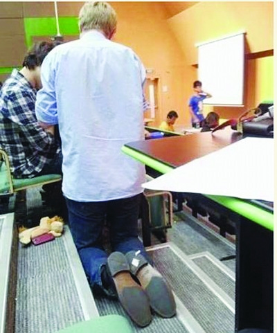 高校外教跪着为学生讲题获赞“最敬业”(图)