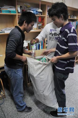 近日,扬州大学一群大二男生利用周末在学生宿舍回收废品的消息和视频引发网友热议。视频中,这群大学生背着空麻袋,挨个敲开学生宿舍的门,回收塑料瓶、废旧书报等废品。目前他们回收的废品已卖掉600余元,其中500元寄给了一位藏族学童。这群大学生被网友亲切地称为“麻袋哥”。新华社记者王骏勇摄 10个“麻袋哥”的酸甜苦辣 “麻袋哥”是扬州大学生物科学与技术学院1001班的10名大二男生。9月29日中午,“中国网事”记者在扬州大学文汇路校区的男生宿舍区看到,班长李晟和同学们拿着空麻袋,开始了国庆节假期前的最后一次废品回收行动。 “同学你好,请问你们宿舍有废旧的塑料瓶和报纸吗,我们是爱心志愿者。”李晟敲开了一个宿舍的门。 “你们来得正好,我们已经攒了五六个瓶子,都给你们。” “感谢你对西藏儿童奉献的爱心!过几天我们再来。” 每一次回收废品之行,“麻袋哥”们都要走访几十个学生宿舍。 谈起事情的起因,李晟告诉记者,开学初,一个偶然的机会得知拉萨一个名叫次仁加旦的孤儿,和收养他的奶奶两人相依为命,每月仅靠奶奶打零工挣的500来元钱过生活,于是全班同学便商量如何对他们进行资助。有的同学提议捐款,有的建议义卖,最终他提议的“回收废品卖钱资助”的方案获得了大家的一致赞同。 “我们班大多数同学都来自农村家庭,目前还靠父母资助学费和生活费。”李晟认为,和捐款不同,回收废品不仅能够提供长期的资助款,最主要是靠我们自己的劳动来体现爱心,还能锻炼大家的自立能力,增强社会责任感。 说干就干,周末和课余时间,全班10个男生两人一组,分成5组开始“扫楼”回收各类废品。 大学生拾废品有没有心理障碍?面对记者这样的提问,李晟的搭档庄国昌坦言,刚开始确实有点开不了口,“比较熟悉的宿舍还好一点,去敲一个个陌生宿舍的门,大家还真有些不好意思。经过几次锻炼之后,逐渐就自然了。”后来,周围其他年级和院系的同学都很支持他们的行动,现在大家收废品特别有干劲,“大学生收废品不丢人,因为我们是靠自己的双手去奉献爱心。” 记者在李晟的宿舍看到,阳台上,回收来的废旧塑料瓶装了大半麻袋。“我们几次收的废品已经卖了600多元,现在大家的热情更高了。”李晟说,下一步,他们打算把回收废品的范围扩大到学校周边的社区,“相信到时候我们能积攒更多的善款,帮助更多的藏童。”