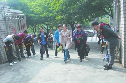 泸州高中学生校门口鞠躬迎老师 每日早上和下午上课前,泸州高中前后校门处,都会有学生分列两旁,以鞠躬敬礼方式,迎接每一位老师的到来。学生说,这是泸州高中学生团体自律部的一个传统,“目的是让老师感受到尊重,让老师心情得到放松。”该校德育处介绍,“向老师鞠躬,是一种传统礼仪的回归,有利于调剂现代师生的关系。” 给老师鞠躬 学生坚持两年多了 昨日下午2时,距离下午上课还有半个小时,泸州高中前后校门处,已有身披绶带的学生分列两侧。其中,前校门站了4名学生。后校门由于人流量更大,站了8名学生。 当见到老师走进校门,这些学生齐齐弯下身子并问候:“老师好!”面对学生们的齐声问候,急匆匆赶来的老师们,大多放慢脚步,面带微笑招呼:“同学们好!”一直到2时25分,距离上课还有5分钟时间,分列学校门口两侧的学生这才匆匆返回教室。原本喧嚣的校园,很快恢复了平静。 这些给老师们鞠躬的,都是泸州高中学生团体自律部的学生。该部副部长、高二年级学生杨阿琴介绍,自律部总共有70多名成员,“自律部共分成6个小组。通过小组值班的方式,每天由一个小组站在校门口给老师鞠躬敬礼。早上敬礼时间7时到7时25分,下午敬礼时间,则从2时到2时25分。只要没有特殊情况,天天都会进行。” 对于为何会采取这种形式,杨阿琴表示,这是自律部的一个传统,“早在两年多前就开始进行了。我们发现,鞠躬过后的一声问好,即使没什么表情的老师,往往也会笑一笑。这就是我们的目的,让老师感受到尊重,让老师心情得到放松。” 老师受感动 有一种被尊重的感觉 “这是学生的自发行为。后来考虑到这一行为不错,我们也就保留了下来。”接受成都商报记者采访时,泸州高中德育处负责学生社团的老师雷冬梅表示。“让我印象深刻的是,刚刚开始搞时,我正好休产假。产假结束后上班第一天,看到两边孩子齐齐鞠躬,吓了我一大跳。等我回过神来,我挺感动。那真就有一种被尊重的感觉。” 今年已经64岁、退休后又返聘回校的泸州高中教师温世娟则表示,自己教了30多年书,对于学生的尊重,自己最看重,“这种尊重指的并不是见了老师一定要鞠躬敬礼,哪怕一个微笑、一声问候,也会让老师感到特别温暖。”温世娟感慨,30多年的教书经历也让自己有一种深切体会,“由于时代不同了,现在的孩子对于老师的感情,也和以前有所不同。总体而言,传统的东西,比如鞠躬敬礼,慢慢在减少。其他的表达方式,则逐渐增多。学生们坚持在校门口鞠躬敬礼,这也可理解为传统礼仪的回归。” 不过,一位自律部学生也表示,向老师鞠躬敬礼,自己只有站在校门口时才会这样。平时见到老师,最多就是一声问候,不会鞠躬。因此,对于天天站在校门口鞠躬是否流于形式,该学生表示,形式也能在一定程度上承载意义,“我们就是想通过这一传统礼仪,进一步弘扬尊师重教的精神。” 向老师鞠躬 是一种传统礼仪的回归 现年64岁的温世娟表示,从念书到教书,她见证了50多年间尊师传统的衍变。“总体而言,那就是从传统到现代的变化。传统的东西都显得比较严肃。而现在的学生,往往不喜欢严肃。” 温世娟介绍,上世纪50年代初,老师处于一种权威地位,“那时候我在念书,对于老师,我内心充满的是一种畏惧感,觉得老师说的都是对的。后来一段时间,师道尊严不复存在。改革开放后,尊师传统开始重建。而现在,表达方式则变得更加多样和随意。”让温世娟最有感触的是,自己当学生时,给老师开个玩笑,那都是不可想象的事情。“而现在,学校当中各种各样的‘哥’不少。” 杨阿琴表示,就在自己所在的高二年级,就有很多个这样的“名哥”存在,“年级主任汪华书,是学校出了名的汪哥。我们班主任聂志刚,则是刚哥。我对老师的称呼挺规矩的,但内心深处,我挺羡慕那些汪哥、刚哥叫得特顺口的同学。”对于“刚哥”这一名号,聂志刚哈哈一笑,“课堂上,同学们都叫我聂老师,课堂外,叫刚哥的更多一点。我挺满意这个称呼。” 在各种“名哥”充满校园的语境之下,温世娟表示,这确实更容易融洽师生之间关系,“但同时,也有一个度的把握。传道授业过程当中,老师毕竟对学生还有一个约束。如果过于考量师生之间关系的平等,该严肃的时候严肃不起来,这不太好。而一些传统的回归,有利于对现代师生关系进行调剂。”(成都商报记者 张柄尧) |