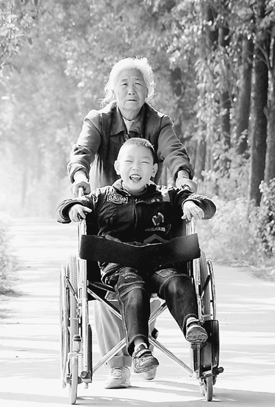 陪读奶奶”62岁 用轮椅推着孙子走进课堂 组图