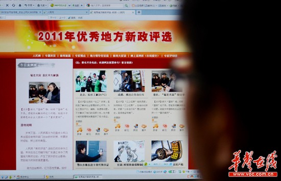 华声网友“DAVY”正在浏览“2011优秀地方新政”评选的页面。记者 王立三 摄