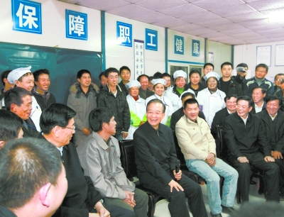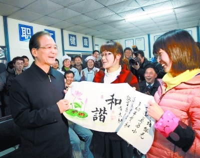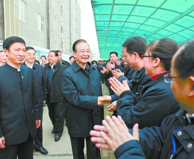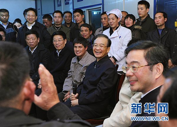 1月2日,温家宝亲切看望株洲旗滨集团股份有限公司节日加班的员工。
