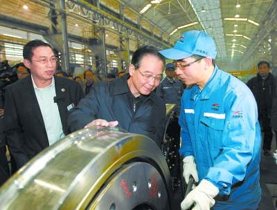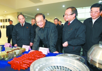 1月2日,温家宝在江麓重工科技有限公司了解企业生产经营情况。