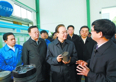 ( 1月1日,中共中央政治局常委、国务院总理温家宝在湖南江滨机器(集团)有限公司产品展示中心调研。 本报记者 张目 摄)