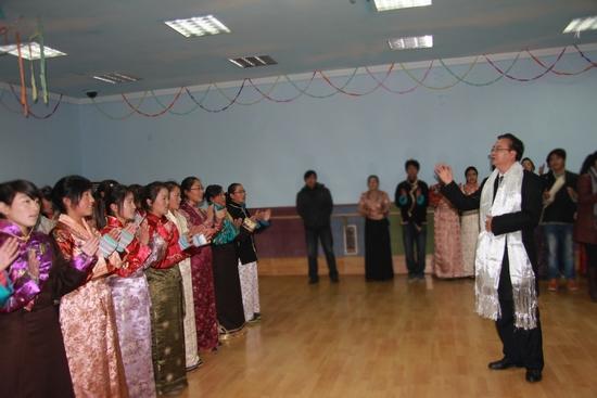 李友志在长沙师范学校与西藏班学生一起合唱《歌唱祖国》。