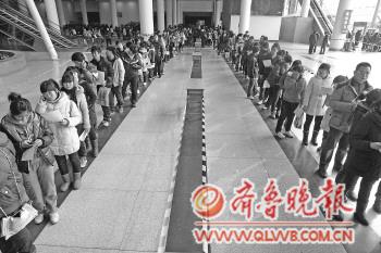 ◤1月31日,山东工艺美院艺考报名现场,排起了长队。记者 左庆 摄